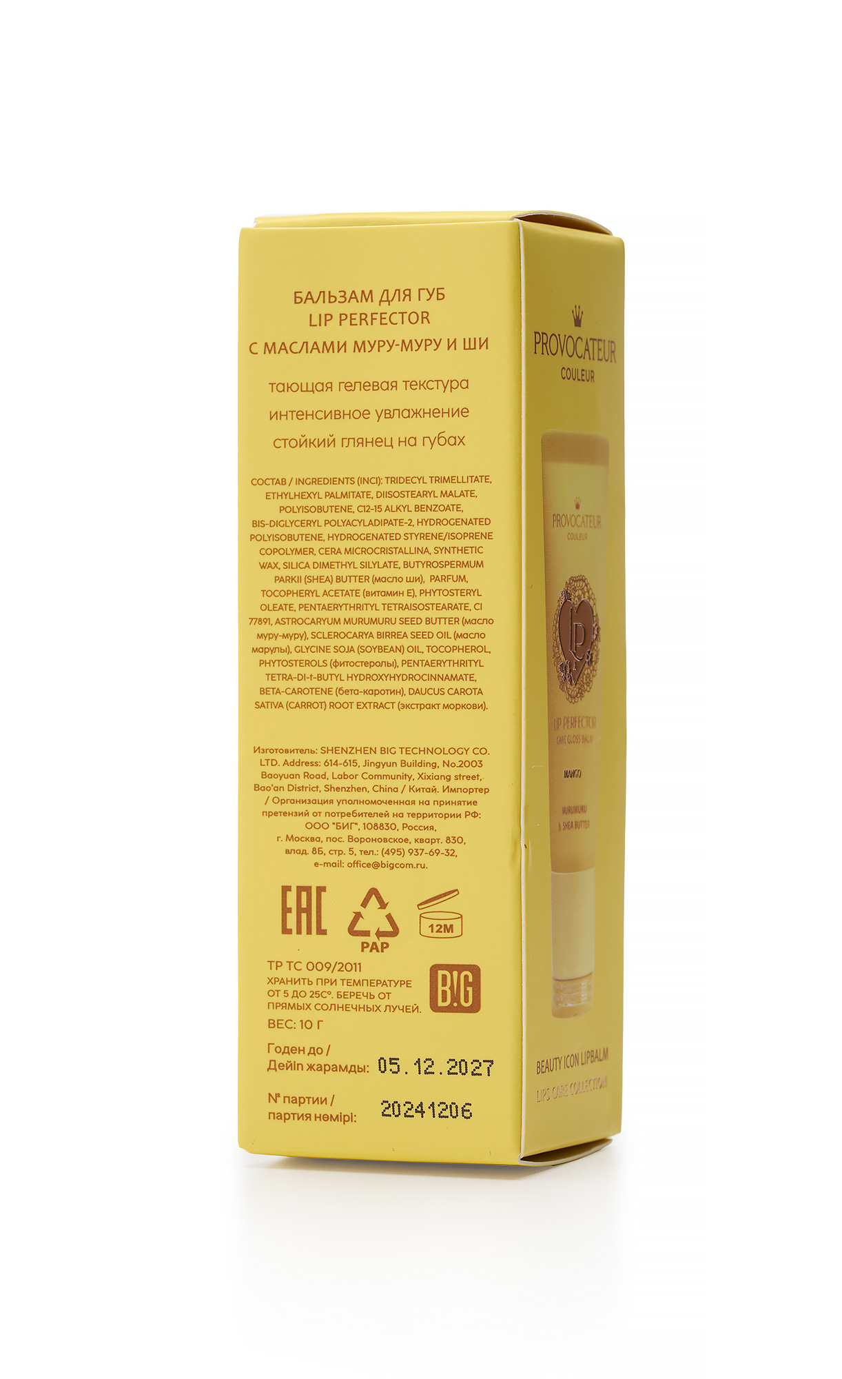 TRIDECYL TRIMELLITATE, ETHYLHEXYL PALMITATE, POLYISOBUTENE, DIISOSTEARYL MALATE, C12-15 ALKYL BENZOATE, BIS-DIGLYCERYL POLYACYLADIPATE-2, HYDROGENATED POLYISOBUTENE, HYDROGENATED STYRENE/ISOPRENE COPOLYMER, CERA MICROCRISTALLINA, SYNTHETIC WAX, SILICA DIMETHYL SILYLATE, POLYGLYCERYL-3 DIISOSTEARATE, BUTYROSPERMUM PARKII (SHEA) BUTTER (масло ши), PARFUM, TOCOPHERYL ACETATE (витамин Е), PHYTOSTERYL OLEATE, CI 77891, PENTAERYTHRITYL TETRAISOSTEARATE, ASTROCARYUM MURUMURU SEED BUTTER (масло муру-муру), SCLEROCARYA BIRREA SEED OIL (масло марулы), GLYCINE SOJA (SOYBEAN) OIL, TOCOPHEROL, PENTAERYTHRITYL TETRA-DI-t-BUTYL HYDROXYHYDROCINNAMATE, BETA-CAROTENE (бета-каротин), DAUCUS CAROTA SATIVA (CARROT) ROOT EXTRACT (экстракт моркови).