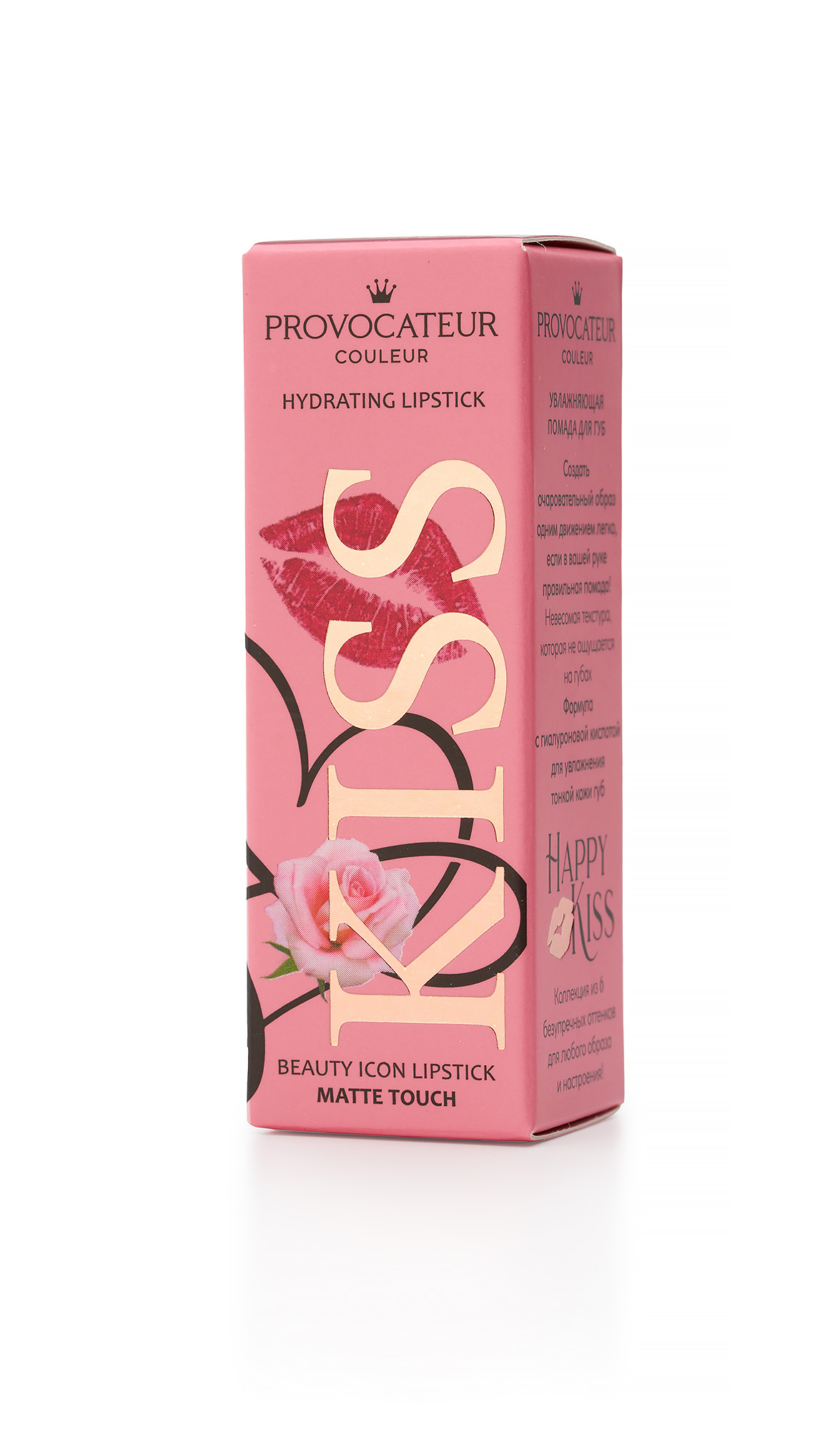 Увлажняющая помада Provocateur станет настоящим открытием для тех, кто ценит насыщенный, ровный цвет с первого нанесения и плотный финиш без блеска. Формула с гиалуроновой кислотой придаст губам увлажнение и здоровый вид. Матовая помада Happy Kiss - продолжение естественного цвета губ, неизменно привлекательного. Красивые, увлажненные губы с роскошным матовым оттенком добавят шарма вашему образу. Благодаря витамину Е и маслу оливы в составе, они будут выглядеть ухожено даже после долгого дня. Текстура помады невесомая, что обеспечивает комфортное ношение в течение дня - до 4 часов натурального, красивого цвета без сухости и шелушения. На губах она абсолютно незаметна, сохраняя при этом пигментированный цвет. Легкий аромат создает атмосферу роскоши и заботы. Помада прекрасно держит контур, даже без добавления лайнера-карандаша, не уступая по качеству и интенсивности цвета помадам Pupa, Artdeco, Max Factor, L’Oreal. Палитра оттенков разнообразна для любого тона кожи и возраста, чтобы каждая представительница прекрасного пола могла подобрать подходящий для себя цвет. Густые пигменты наполняют губы яркостью, скрывая мелкие недостатки кожи и делая улыбку более привлекательной. Эта увлажняющая помада стала находкой для тех, кто стремится сохранить красоту своих губ без лишних усилий. Создайте свой образ с новыми матовыми оттенками и ощутите всю легкость самовыражения! *Provocateur (французский язык, Провокатёр) Перевод на русский язык - Провокатор.