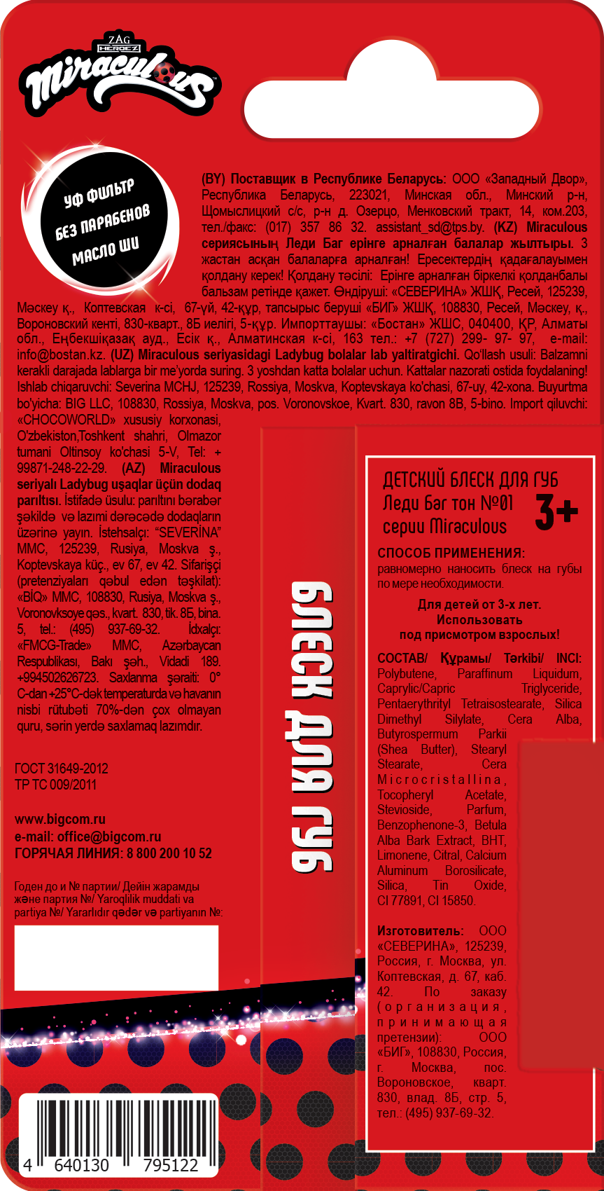 Нежная текстура и модный оттенок – это еще не все! Ведь этот блеск для губ обладает потрясающим ароматом и нежным сладким вкусом! Настоящее супр-средство для супер-очарования. Блеск для губ придает оттенок и дарит полноценный уход нежной коже губ, защищает и увлажняет ее. Он создан специально для маленьких красавиц, поэтому не содержит парабены и обогащен комплексом из масла макадамии и витамина Е.