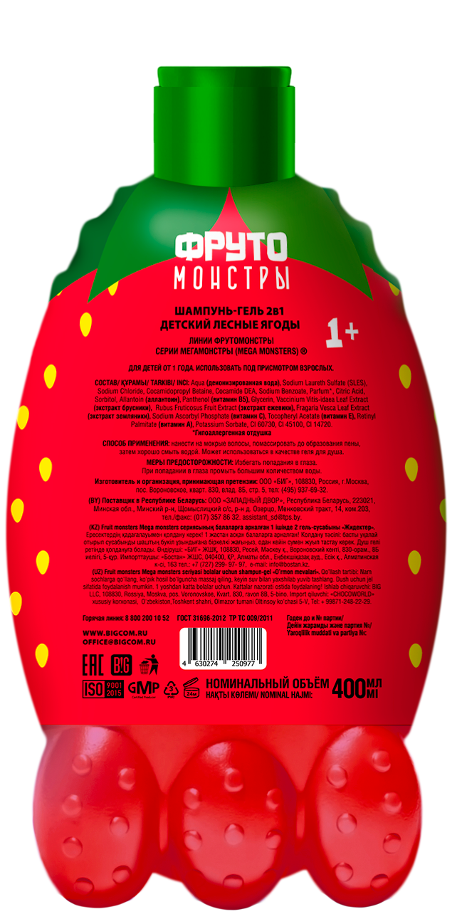 Забавный Фрутомонстр с ароматом лесной земляники превратит купание в настоящую игру. Собирай коллекцию веселых друзей для яркого купания!