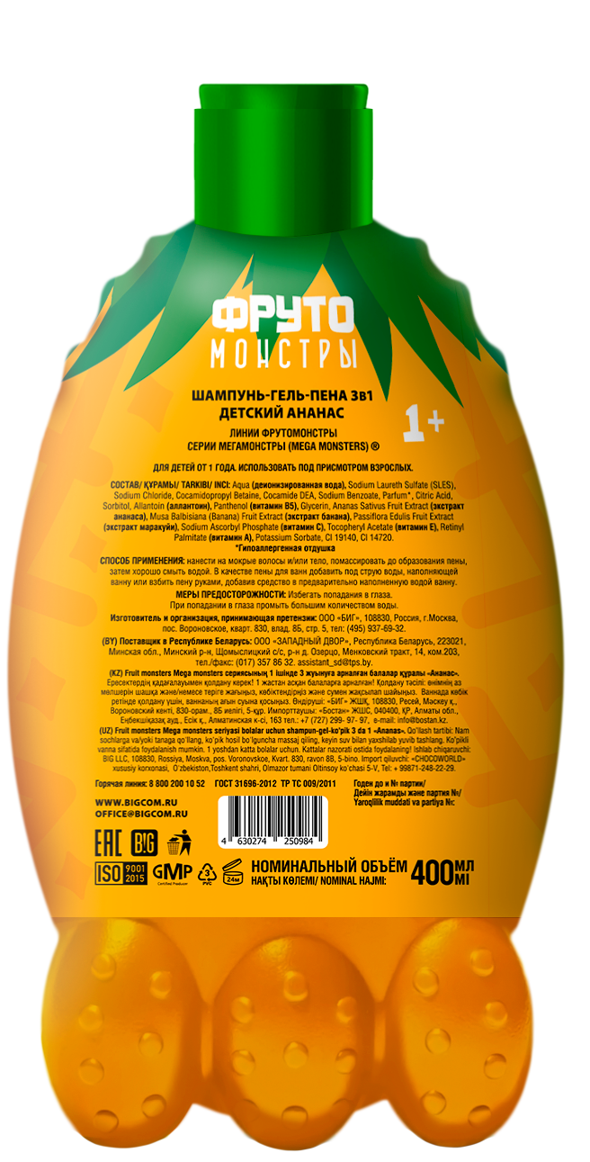 Шампунь-гель-пена Ананас - универсальное средство 3в1, которое содержит: