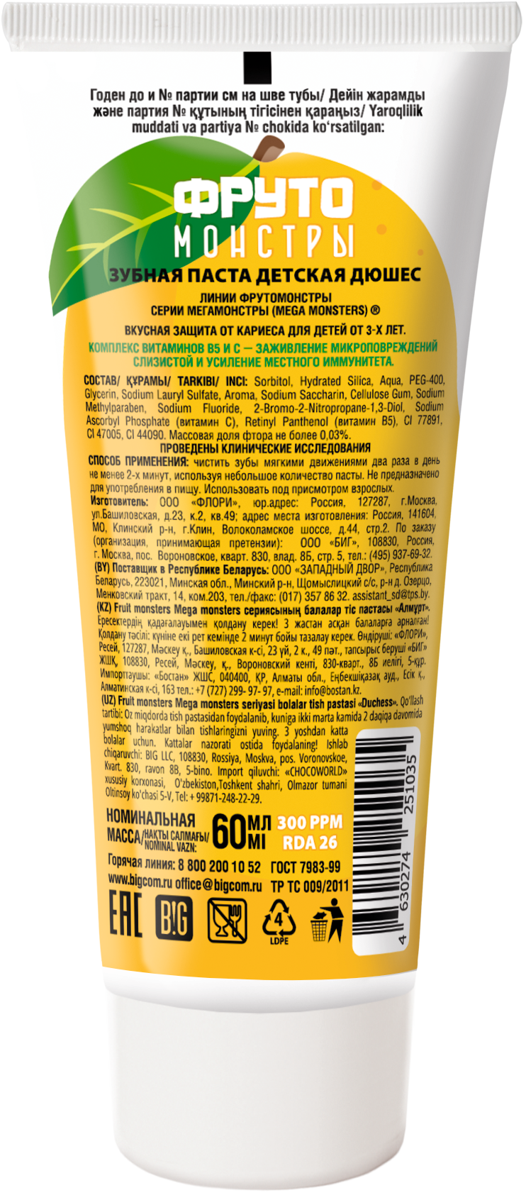 Содержание фтора 300ppm, низкая абразивность 26 RDA.