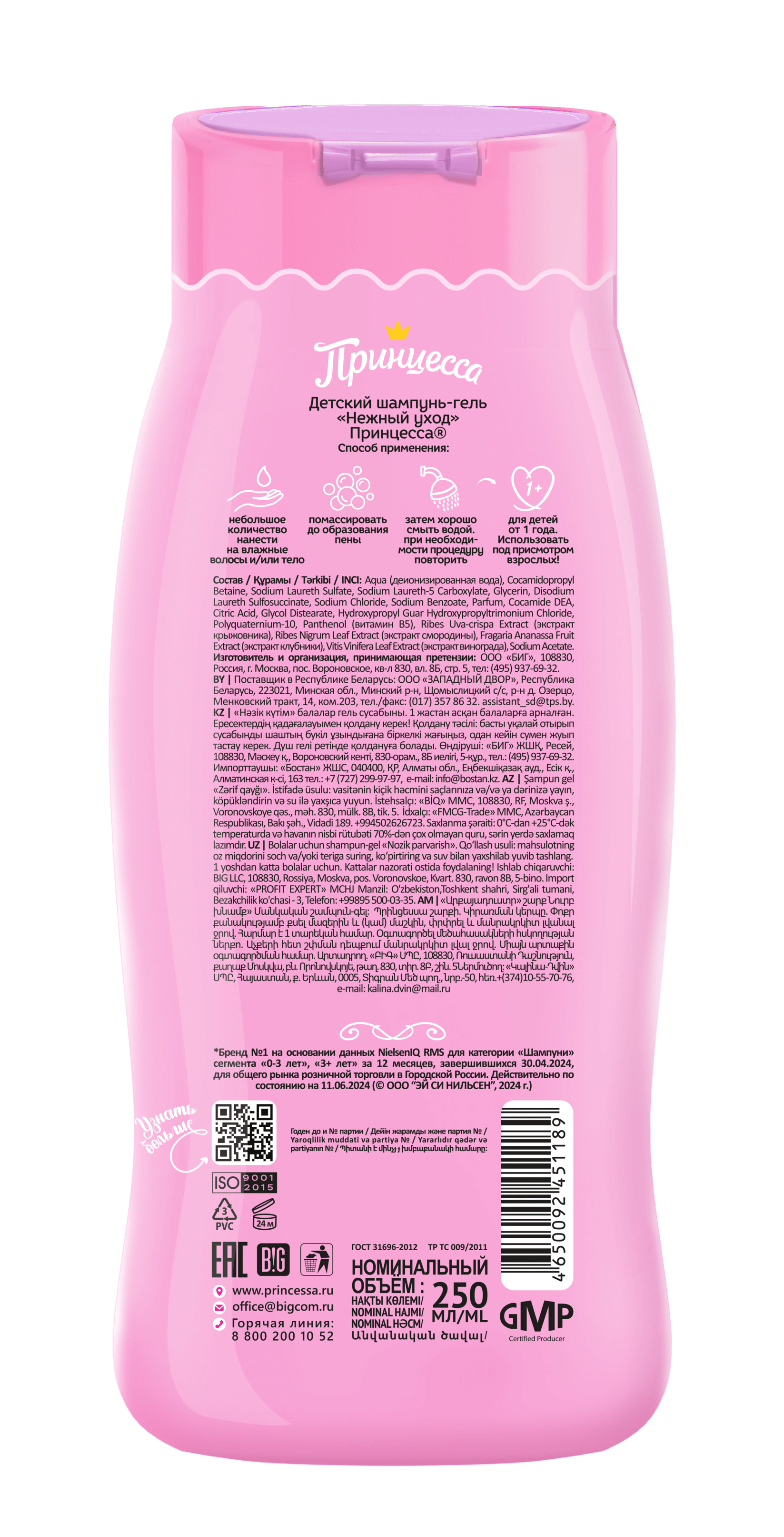 Клубничка круглый год, разве это не чудесно? Шампунь «Нежный уход» подарит маленькой Принцессе бережный уход за чувствительной кожей головы и волосами. Нежный сладкий аромат клубники подарит любой Принцессе прекрасное настроение. Шампунь-гель успокаивает чувствительную кожу, делает волосы послушными, придает им блеск. Мягкий состав позволяет использовать его ежедневно и как шампунь и как гель для душа. Насыщенность натуральными компонентами обеспечивает особый уход и легкое расчесывание.