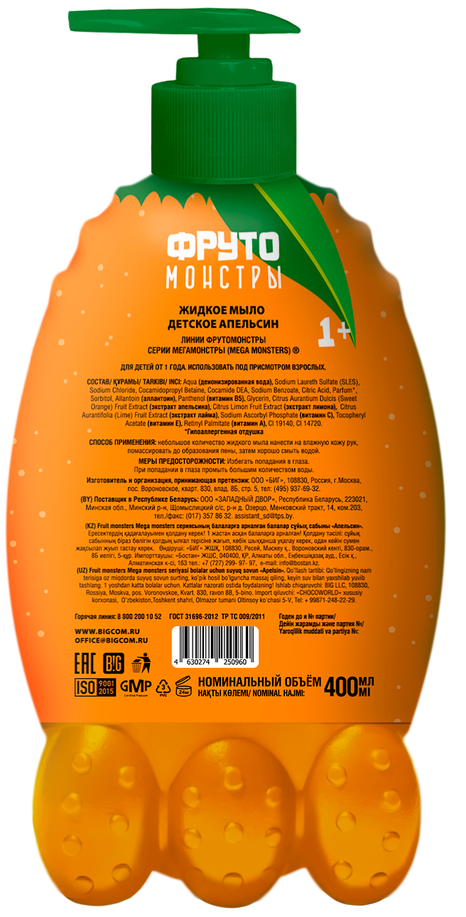 Жидкое мыло Апельсин подходит для частого применения и содержит: