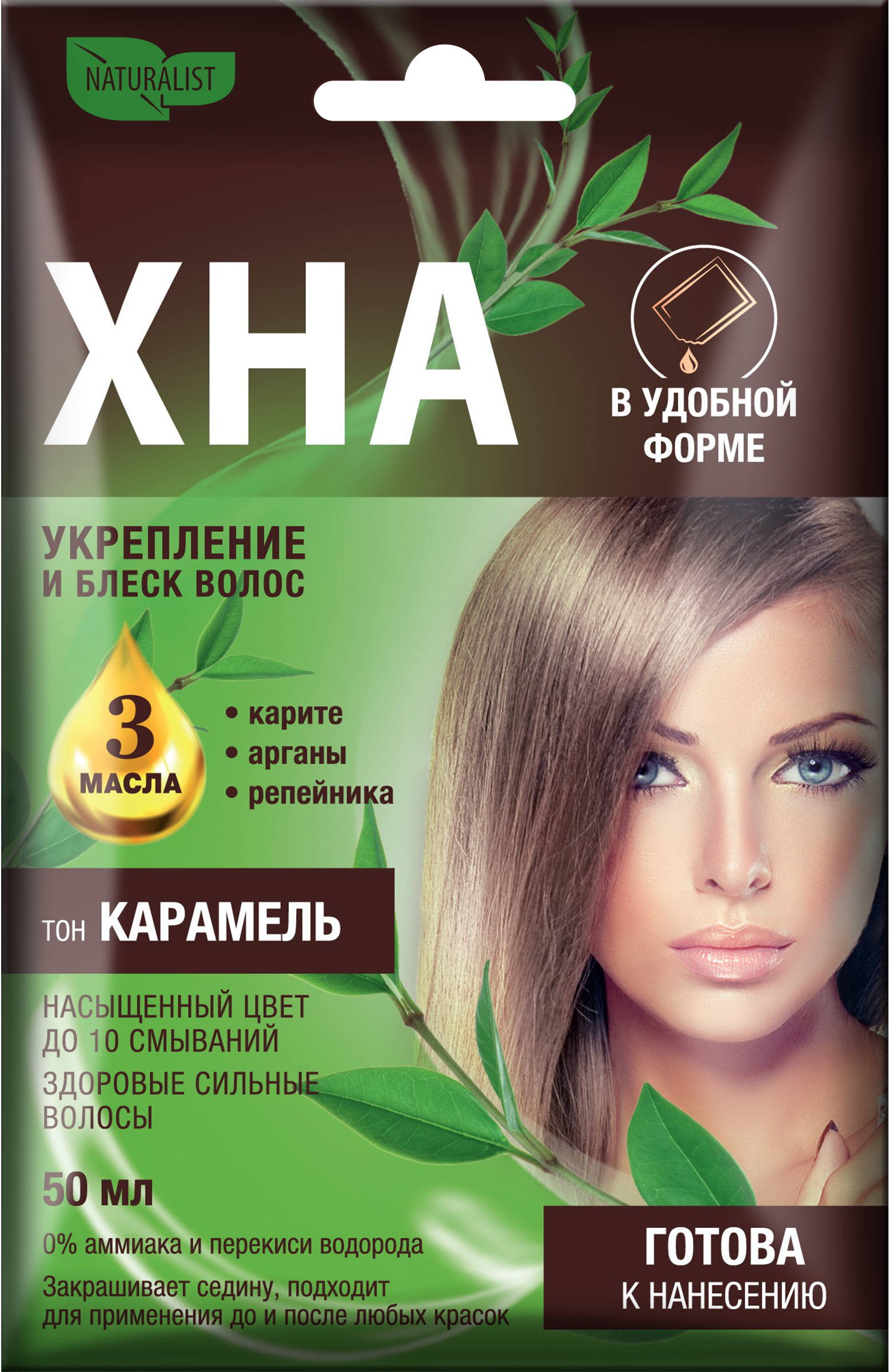КарамельХНА В УДОБНОЙ ФОРМЕ – современный окрашивающий продукт, дарит волосам сочный красивый оттенок, как хна, и непревзойденный натуральный уход благодаря содержанию ценных натуральных масел и экстракта шёлка. Ваши волосы становятся более плотными, объемными, гладкими и сияющими. Важным достоинством продукта является то, что его можно использовать в перерывах между окрашиваниями стойкой окислительной краской для усиления яркости оттенка и скрытия отрастающих корней.