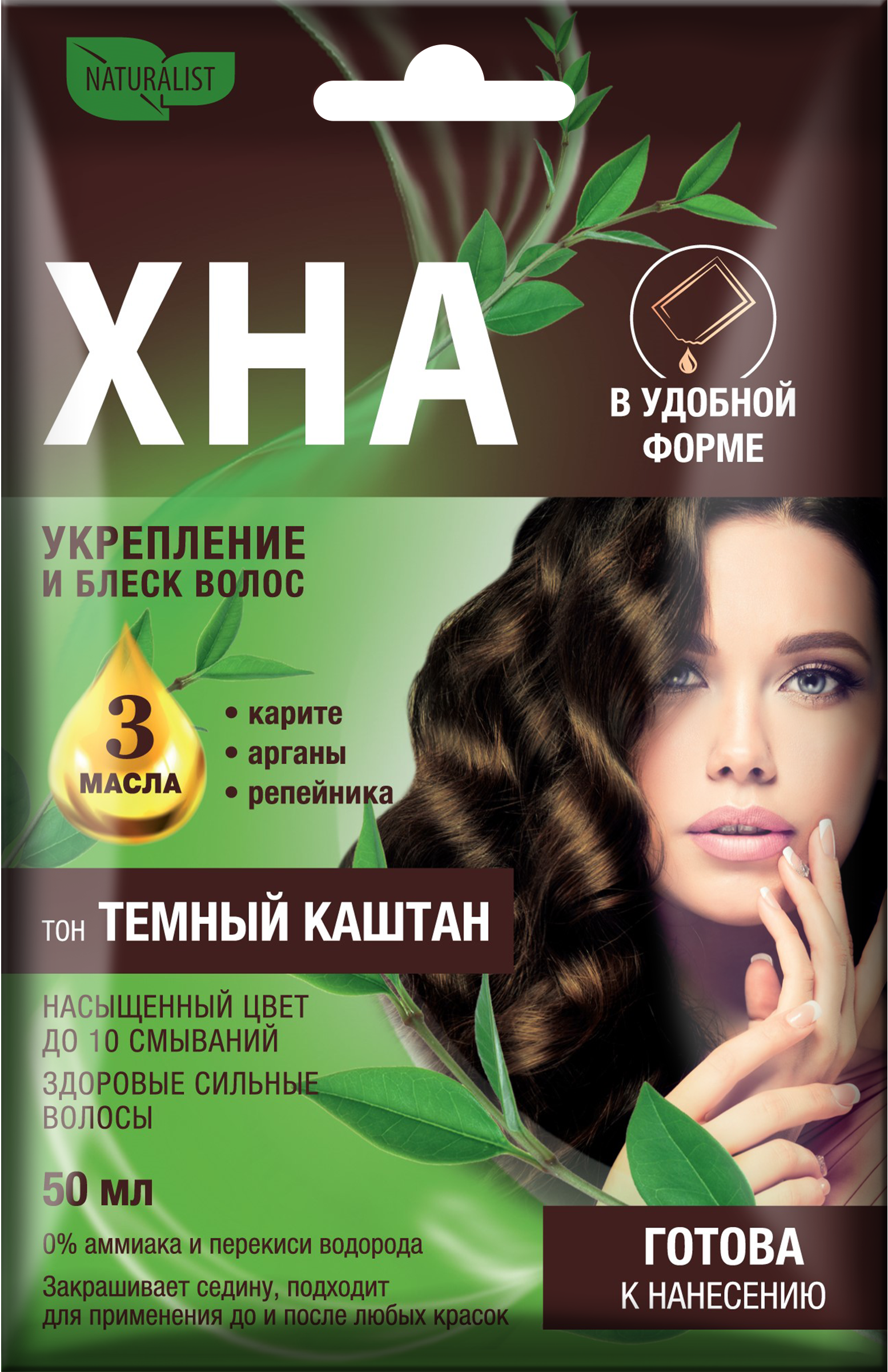 ХНА В УДОБНОЙ ФОРМЕ – современный окрашивающий продукт, дарит волосам сочный красивый оттенок, как хна, и непревзойденный натуральный уход благодаря содержанию ценных натуральных масел и экстракта шёлка. Ваши волосы становятся более плотными, объемными, гладкими и сияющими. Важным достоинством продукта является то, что его можно использовать в перерывах между окрашиваниями стойкой окислительной краской для усиления яркости оттенка и скрытия отрастающих корней.