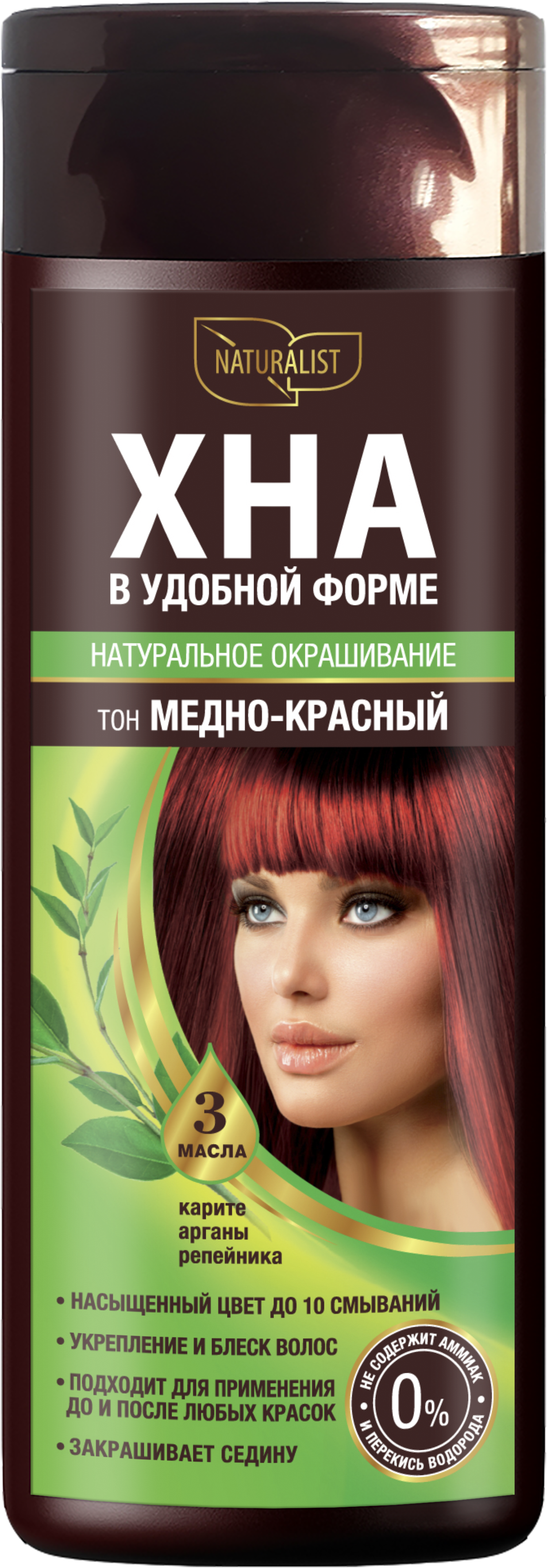 ХНА В УДОБНОЙ ФОРМЕ – современный окрашивающий продукт, дарит волосам сочный красивый оттенок, как хна, и непревзойденный натуральный уход благодаря содержанию ценных натуральных масел и экстракта шёлка. Ваши волосы становятся более плотными, объемными, гладкими и сияющими. Важным достоинством продукта является то, что его можно использовать в перерывах между окрашиваниями стойкой окислительной краской для усиления яркости оттенка и скрытия отрастающих корней.