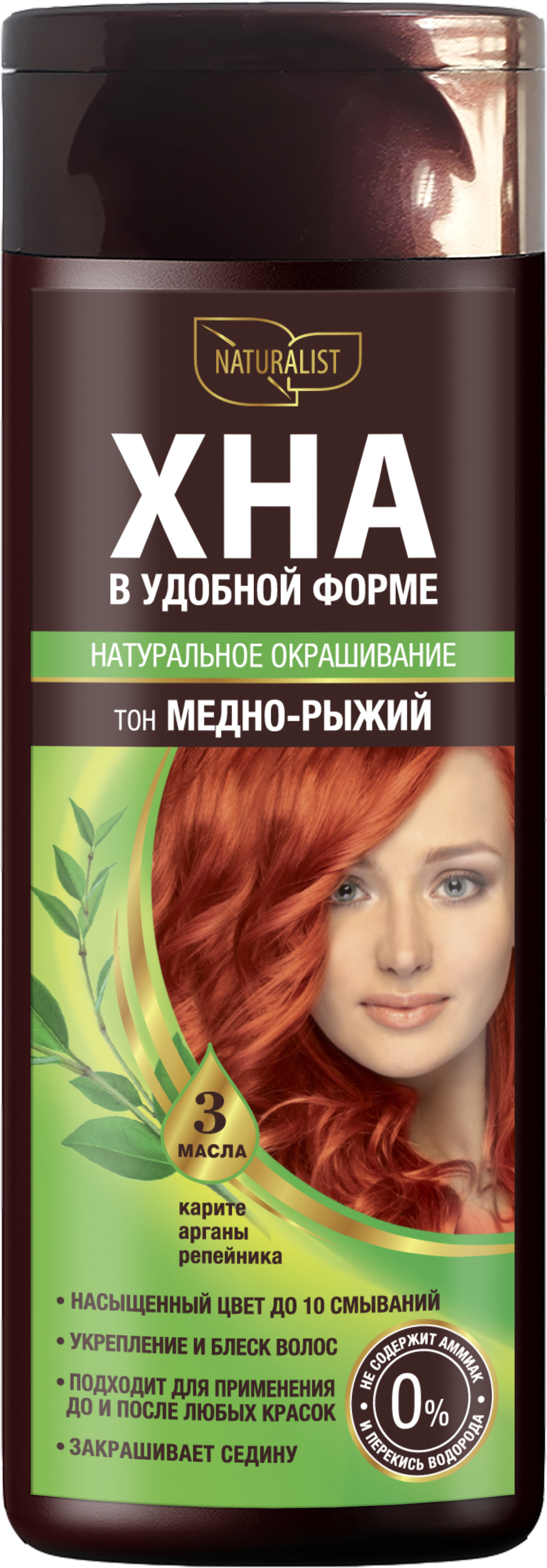 ХНА В УДОБНОЙ ФОРМЕ – современный окрашивающий продукт, дарит волосам сочный красивый оттенок, как хна, и непревзойденный натуральный уход благодаря содержанию ценных натуральных масел и экстракта шёлка. Ваши волосы становятся более плотными, объемными, гладкими и сияющими. Важным достоинством продукта является то, что его можно использовать в перерывах между окрашиваниями стойкой окислительной краской для усиления яркости оттенка и скрытия отрастающих корней.