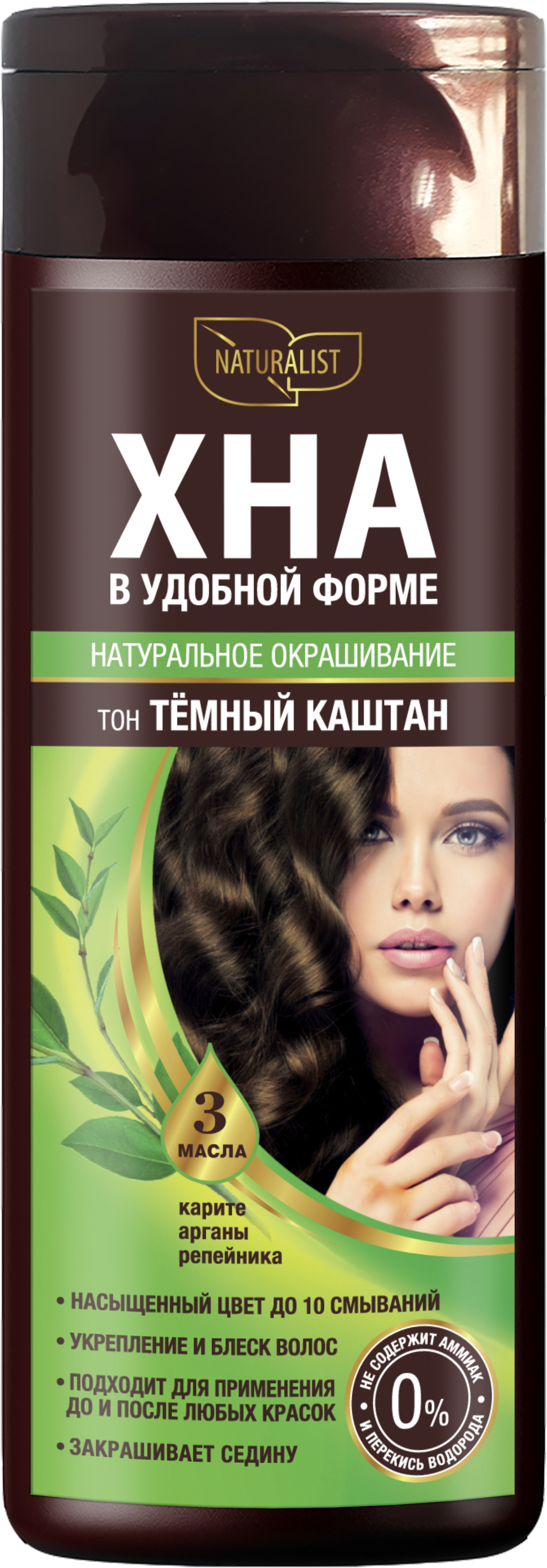 Темный каштанХНА В УДОБНОЙ ФОРМЕ – современный окрашивающий продукт, дарит волосам сочный красивый оттенок, как хна, и непревзойденный натуральный уход благодаря содержанию ценных натуральных масел и экстракта шёлка. Ваши волосы становятся более плотными, объемными, гладкими и сияющими. Важным достоинством продукта является то, что его можно использовать в перерывах между окрашиваниями стойкой окислительной краской для усиления яркости оттенка и скрытия отрастающих корней.