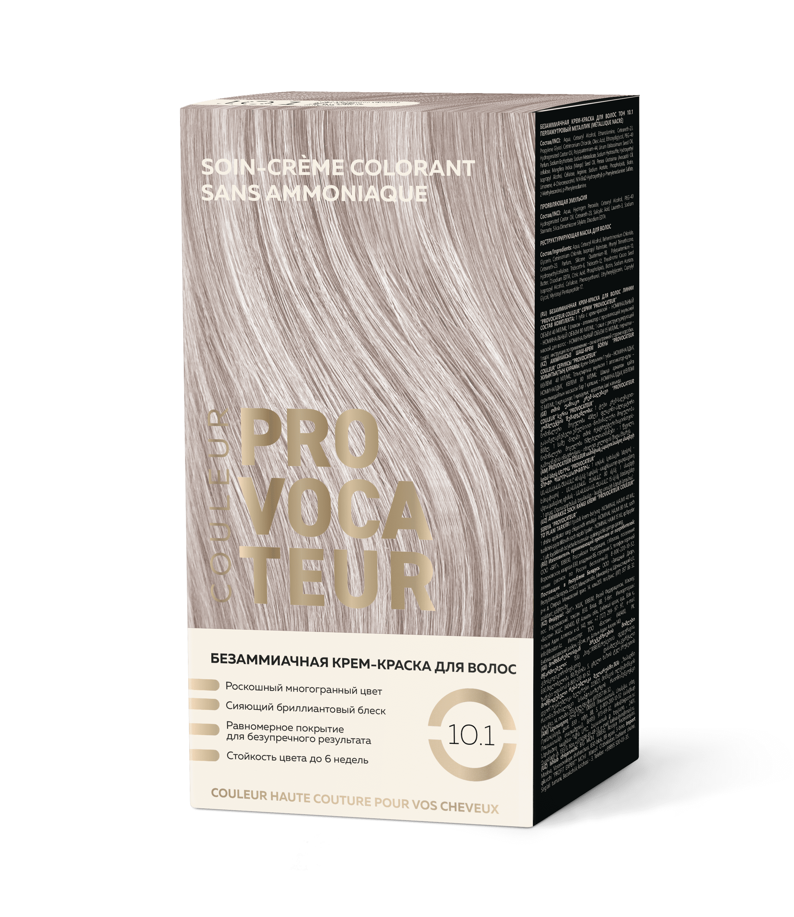 Стойкая безаммиачная крем-краска для волос PROVOCATEUR COULEUR  – это неповторимая игра цвета в сочетании с ухоженностью и роскошным блеском. Завораживающие оттенки делают акцент на вашей индивидуальности, а мягкая формула без аммиака создает мультитональное покрытие с чувственным, бескомпромиссным сиянием. Коллекция PROVOCATEUR Couleur – цвет haute-couture для ваших волос!