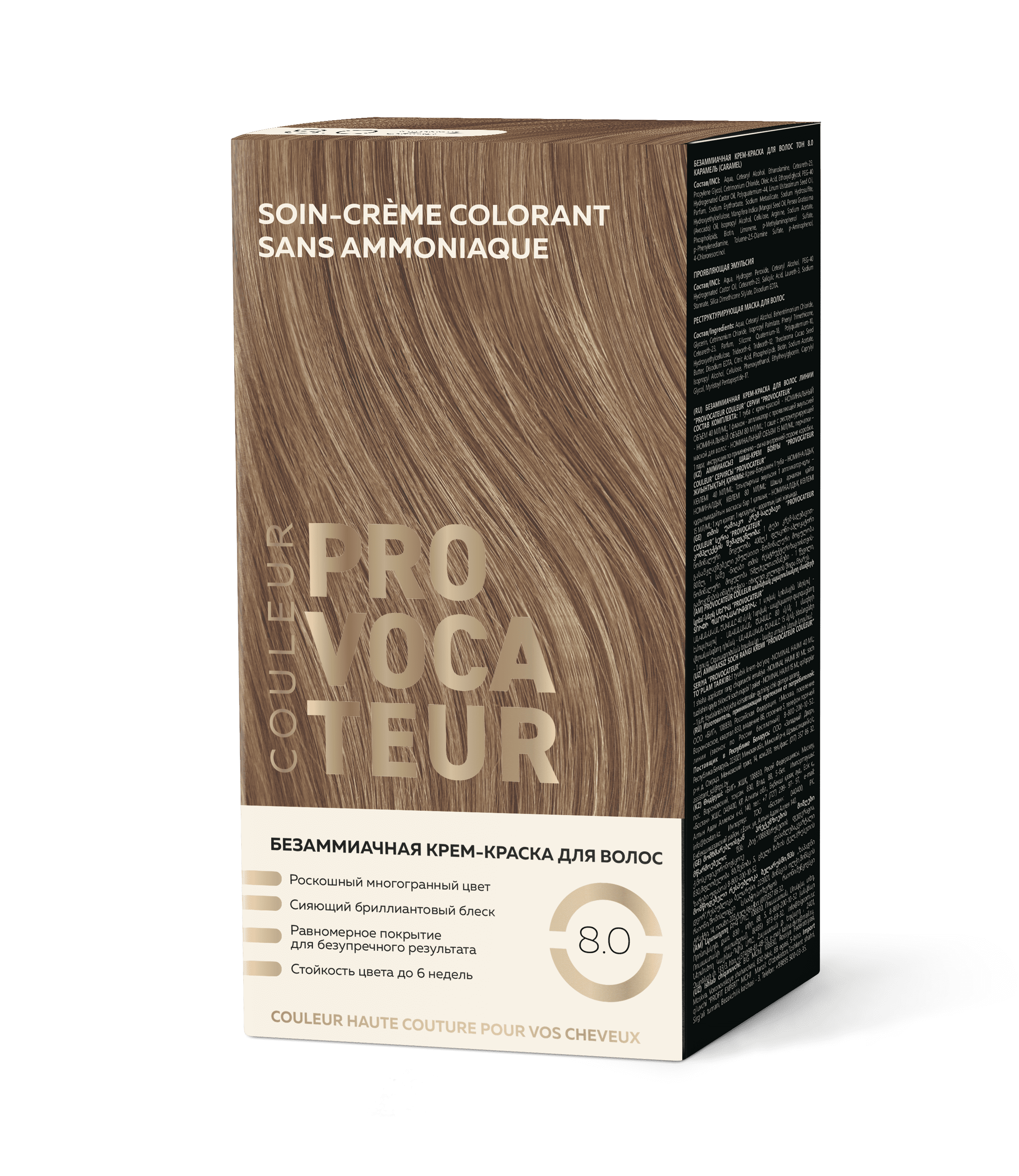 - При первом применении краски на длинные волосы рекомендуется использовать 2 набора для безаммиачного окрашивания Provocateur.