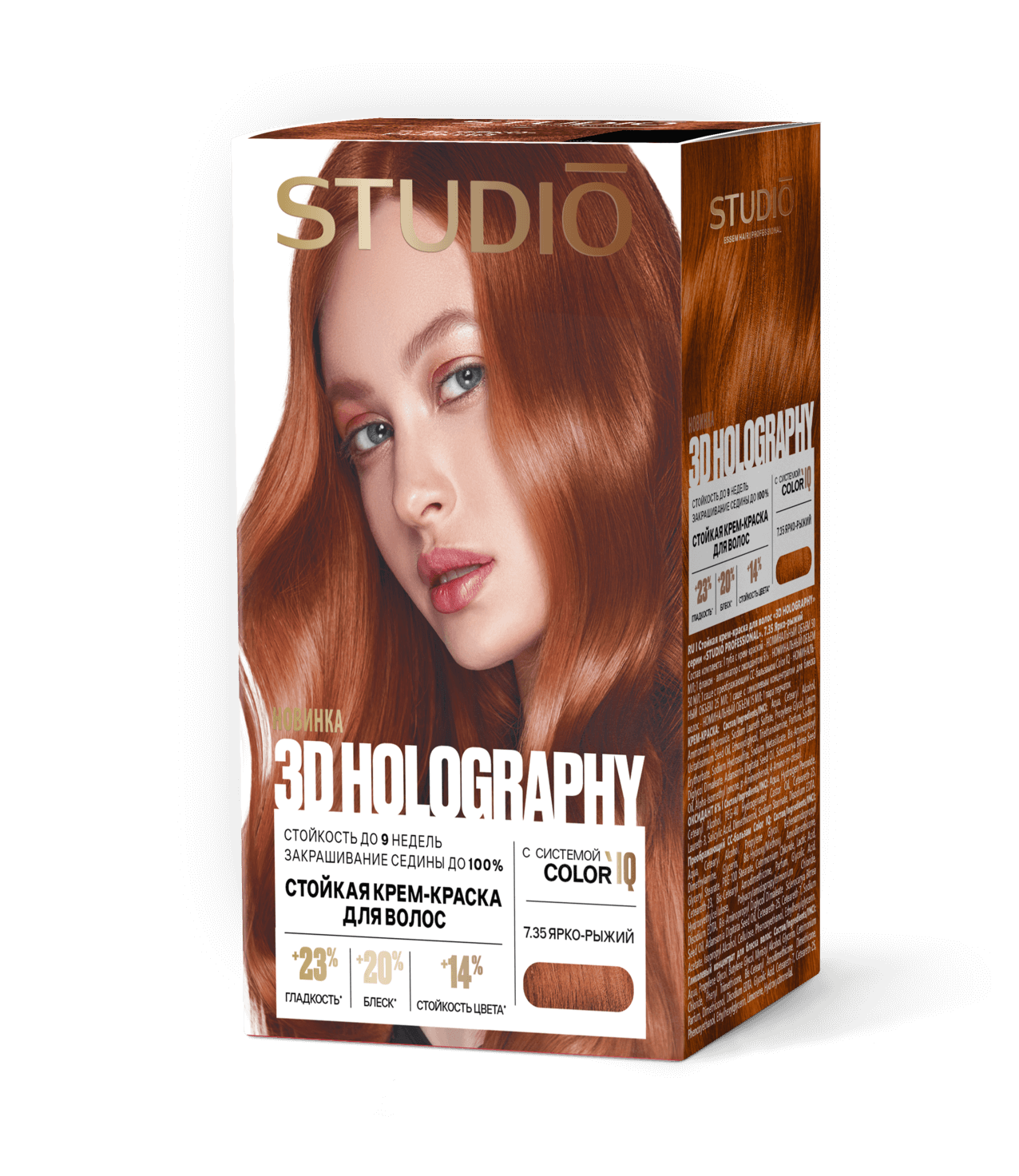 7.35 Ярко-рыжий3D HOLOGRAPHY – инновационная крем-краска с системой «умного цвета» Color IQ для стойкого и безопасного окрашивания.