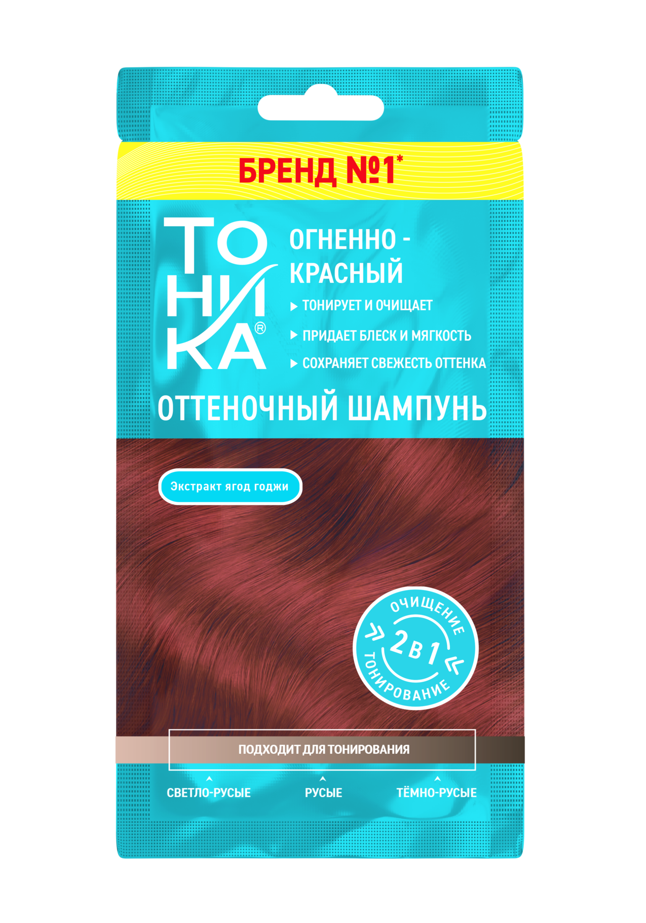 Пылкий и энергичный, огненно-красный оттеночный шампунь преобразит ваши волосы, придавая им страстный и смелый ярко красный цвет. Подарите своим волосам идеальный уход с новыми оттеночными шампунями Тоника! Мягкое очищение, деликатное тонирование и интенсивное питание в одном компактном саше. Шампунь не только придает волосам гладкость и легкость в расчесывании, но и сохраняет яркость цвета до 4 раз мытья головы. Уникальная формула с экстрактом ягод годжи, протеинами шелка и пантенолом укрепляет, увлажняет и восстанавливает волосы, делая их сияющими и здоровыми.