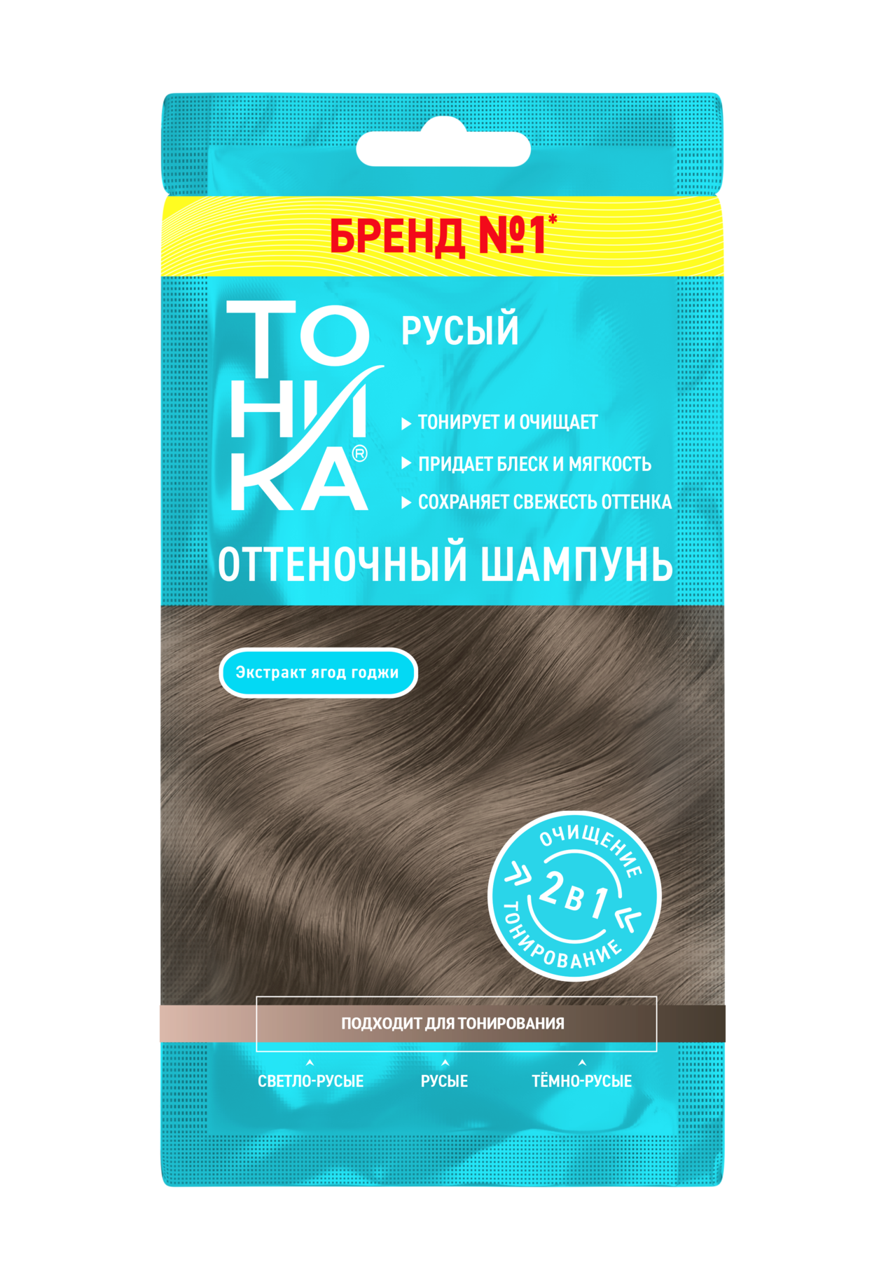 Нежный и естественный, русый оттеночный шампунь придаёт волосам изысканный, гармоничный светло-коричневый холодный цвет. Подарите своим волосам идеальный уход с новыми оттеночными шампунями Тоника! Мягкое очищение, деликатное тонирование и интенсивное питание в одном компактном саше. Шампунь не только придает волосам гладкость и легкость в расчесывании, но и сохраняет яркость цвета до 4 раз мытья головы. Уникальная формула с экстрактом ягод годжи, протеинами шелка и пантенолом укрепляет, увлажняет и восстанавливает волосы, делая их сияющими и здоровыми.