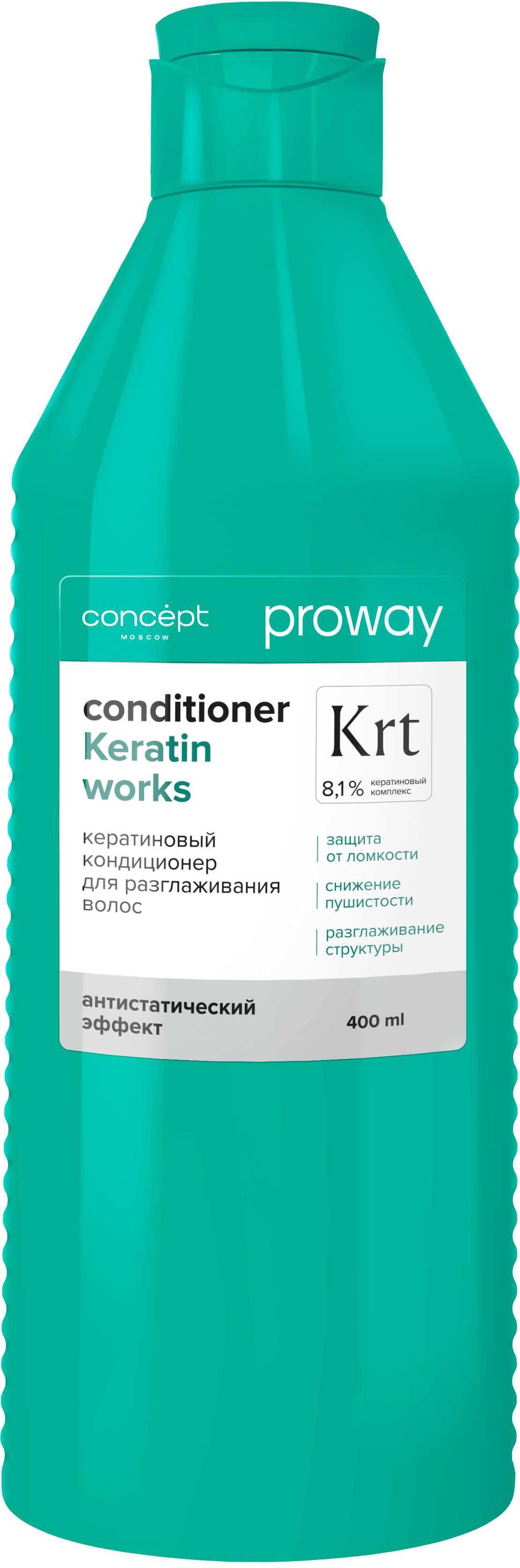 Профессиональная рецептура кондиционера Keratin Works разработана для дисциплинирования непослушных волос с неоднородной текстурой, склонных к пушению, спутыванию и электризации. Входящий в состав кератин, являющийся основным формирующим компонентом волос, легко встраивается в структуру волосяного стержня и, заполняя поврежденные участки, эффективно уплотняет и выравнивает его текстуру по всей длине, за счет чего волосы становятся более прямыми, гладкими и податливыми, лучше сохраняют форму после укладки.