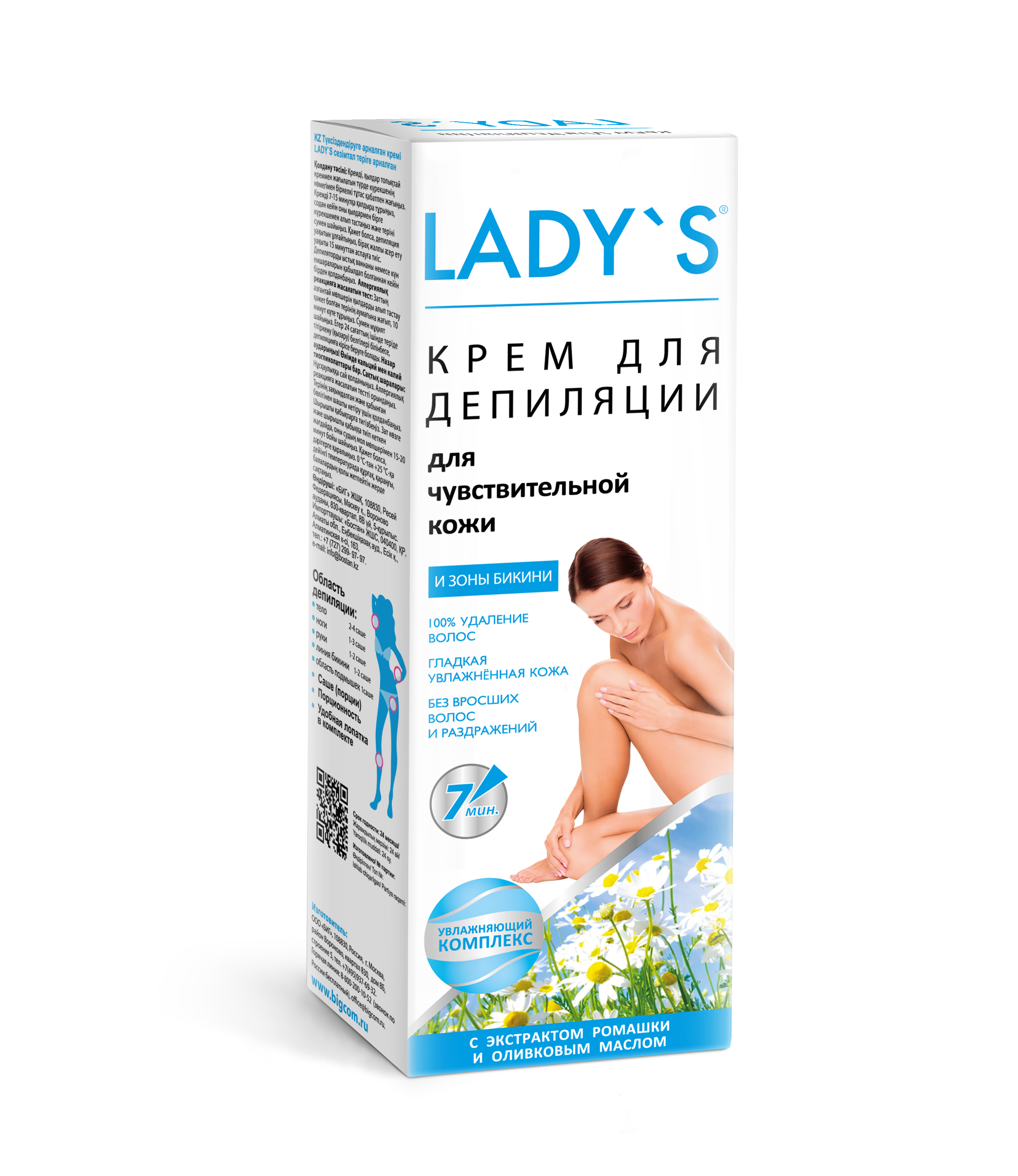 Крем-депилятор для чувствительной кожи с увлажняющим комплексом, оливковым маслом и экстрактом ромашки быстро и эффективно удаляет нежелательные волосы на теле. Особенно эффективно действует на чувствительных зонах линии бикини и в области подмышек.