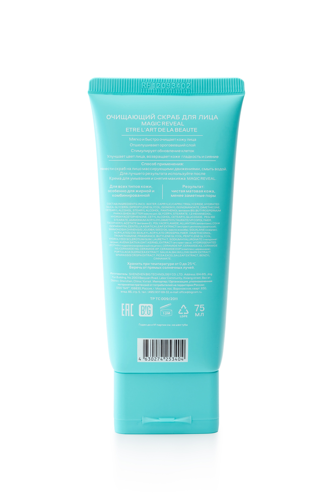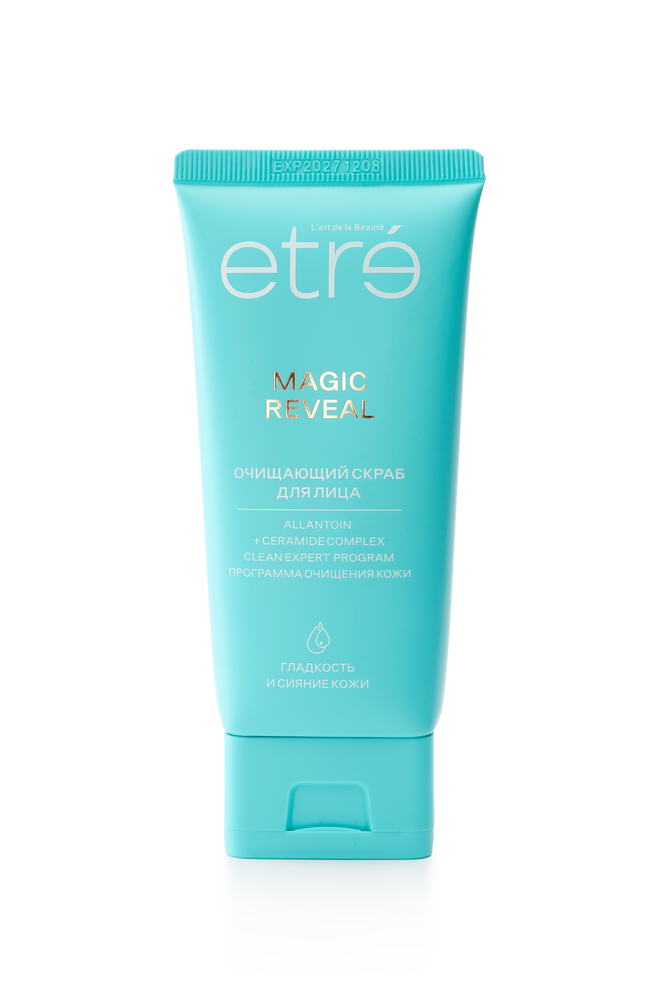MAGIC REVEAL Очищающий скраб для лица с витаминами Е и В3 (ниацинамид), аллантоином, маслами ши и жожоба мягко очищает кожу, стимулирует обновление клеток, дарит коже сияние, гладкость и улучшает цвет лица